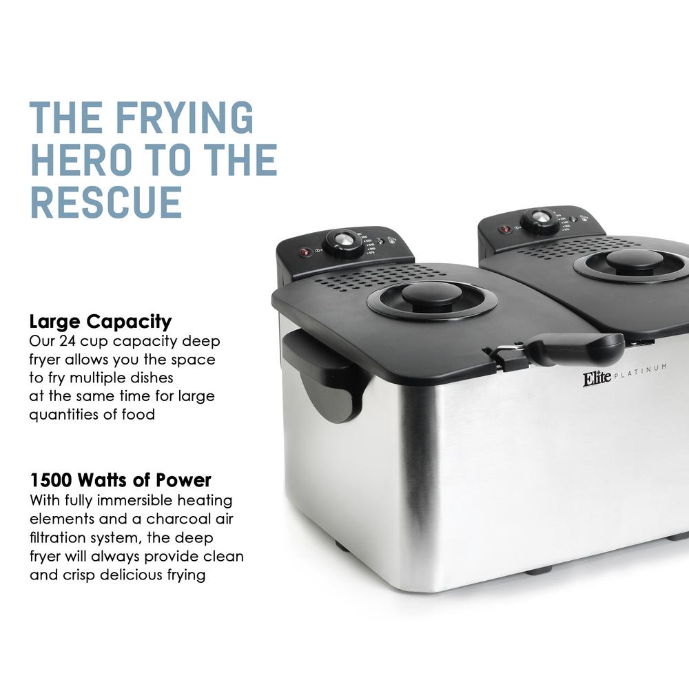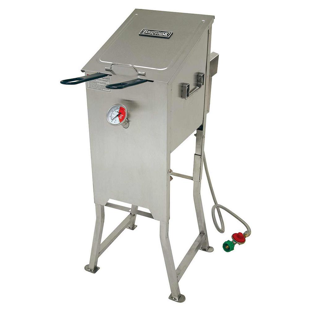 By elite gourmet 8. Pot cast burner and windguard fry up to a 20 lbs. Both cook foods by submerging them in a deep container of oils or fats heated to high temperatures. Some deep fryers also offer multiple baskets.