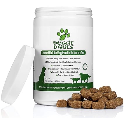 Keep your pal wagging silly with the doggie dailies advanced hip joint with glucosamine chondroitin msm soft chew dog supplement. Made in the usa in our fda registered factory our glucosamine for dogs supports healthy joints increases natural energy levels improves mobility and eases discomfort. In this review we find out if this stuff really holds up to its company claims. Their supplements contain ingredients that have been veterinarian formulated to help with sore joints poor digestion and even ear health.